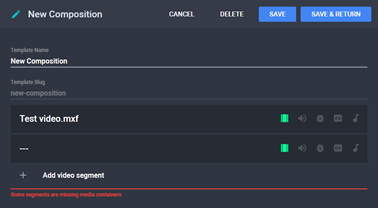 - Click Save to save changes and continue editing the composition template or Save & Return to save changes and return to the Composition Templates menu.