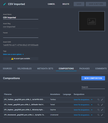 - Click the name of the task to view the resulting asset. The Asset Details page > Compositions