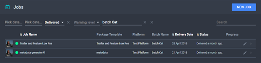 Clicking on any item from the graph will open the Jobs menu with the Status set to Delivered and Batch Name set to the selected batch.