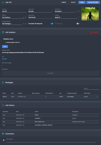 This section is a notification panel, displaying job errors about missing files, metadata, asset tags.